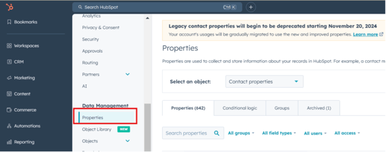 - In the left-hand menu, select Properties under the Data Management section.
