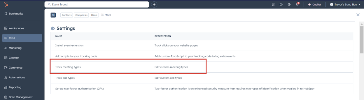 - CRM Event Types: The setup within the CRM that allows you to manage and track different types of meetings.