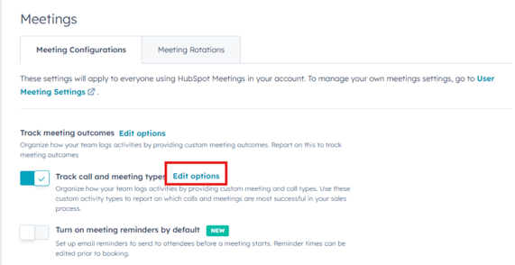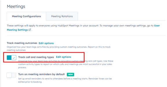 Toggle on Track meeting call and meeting types to enable the feature.