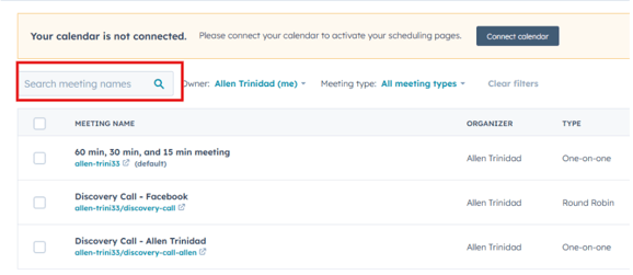 Search for the meeting links you want to track.
