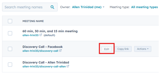 Click Edit Option to customize the meeting types.